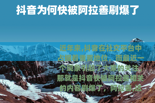 近年来,抖音在社交平台中占据着重要地位,而最近一个现象引起了大家的关注,那就是抖音快被阿拉善相关的内容刷爆了。