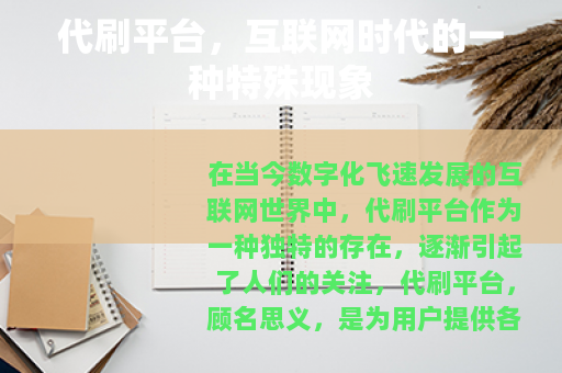 在当今数字化飞速发展的互联网世界中,代刷平台作为一种独特的存在,逐渐引起了人们的关注,代刷平台,顾名思义,是为用户提供各种数据代刷服务的网络平台,它涵盖了众多领域,如社交媒体的粉丝数量、点赞量、评论量,视频平台的播放量,电商平台的店铺信誉和销量等等。