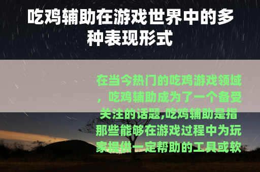 在当今热门的吃鸡游戏领域,吃鸡辅助成为了一个备受关注的话题,吃鸡辅助是指那些能够在游戏过程中为玩家提供一定帮助的工具或软件。