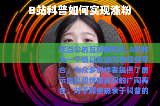 在当今的互联网时代,B站作为一个极具影响力的视频平台,为众多创作者提供了展示自己和传播知识的广阔舞台,对于那些热衷于科普的创作者来说,如何在B站实现涨粉是一个值得深入探讨的话题。 的质量是关键,科普类视频需要确保所传达的知识准确无误,且具有一定的深度和广度,创作者要对自己所涉及的领域有深入的了解,通过精心的策划和准备,将复杂的科学知识或专业内容以通俗易懂、生动有趣的方式呈现给观众,可以结合实际案例、实验演示或有趣的故事,让观众更容易理解和接受,从而提高他们对视频的兴趣和关注度。