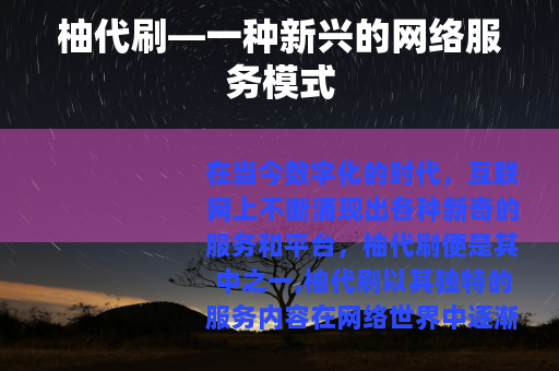 在当今数字化的时代,互联网上不断涌现出各种新奇的服务和平台,柚代刷便是其中之一,柚代刷以其独特的服务内容在网络世界中逐渐崭露头角。