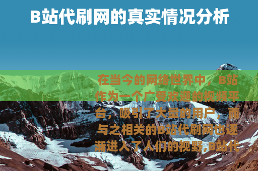 在当今的网络世界中,B站作为一个广受欢迎的视频平台,吸引了大量的用户,而与之相关的B站代刷网也逐渐进入了人们的视野,B站代刷网究竟怎么样呢?