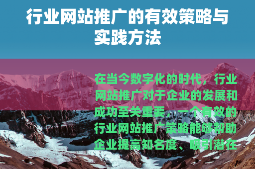 在当今数字化的时代,行业网站推广对于企业的发展和成功至关重要,一个有效的行业网站推广策略能够帮助企业提高知名度、吸引潜在客户、增加销售额,并在激烈的市场竞争中脱颖而出,以下是一些关于行业网站推广的重要策略和实践方法。