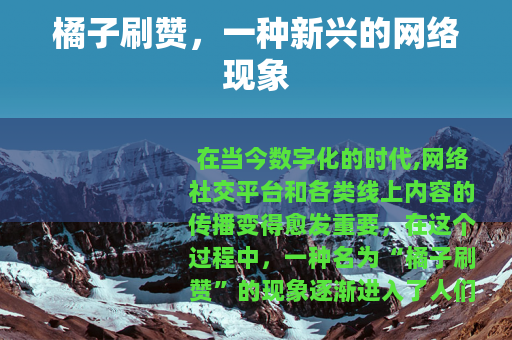 在当今数字化的时代,网络社交平台和各类线上内容的传播变得愈发重要,在这个过程中,一种名为“橘子刷赞”的现象逐渐进入了人们的视野。