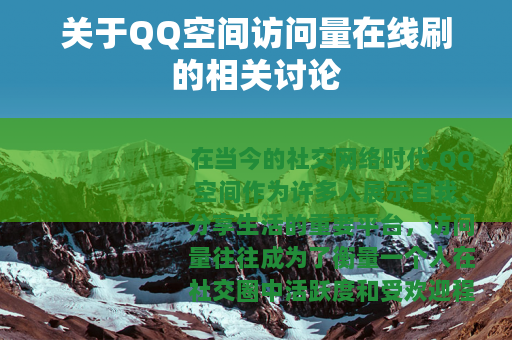 在当今的社交网络时代,QQ空间作为许多人展示自我、分享生活的重要平台,访问量往往成为了衡量一个人在社交圈中活跃度和受欢迎程度的重要指标之一,不少人都希望自己的QQ空间能够拥有较高的访问量,从而获得更多的关注和互动,而QQ空间访问量在线刷的现象也随之应运而生。