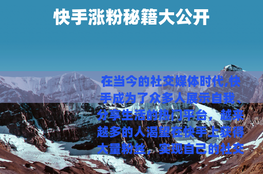 在当今的社交媒体时代,快手成为了众多人展示自我、分享生活的热门平台,越来越多的人渴望在快手上获得大量粉丝,实现自己的社交价值和影响力,怎样才能在快手上最容易地涨粉呢?