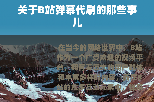 随着B站的不断发展,一种名为B站弹幕代刷的现象也逐渐出现,所谓B站弹幕代刷,就是通过一些非正规的手段,花钱请人或使用特定的软件工具,来增加视频的弹幕数量,这种行为看似能够让视频在短时间内获得更多的关注和热度,但实际上却存在着诸多问题。