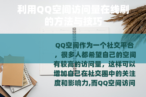 QQ空间作为一个社交平台,很多人都希望自己的空间有较高的访问量,这样可以增加自己在社交圈中的关注度和影响力,而QQ空间访问量在线刷成为了一种满足这种需求的途径。