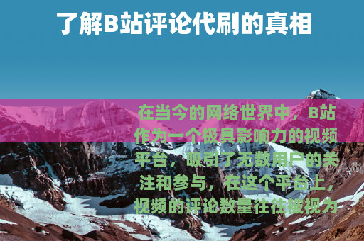 在当今的网络世界中,B站作为一个极具影响力的视频平台,吸引了无数用户的关注和参与,在这个平台上,视频的评论数量往往被视为衡量其热度和受欢迎程度的一个重要指标,一种名为“b站评论代刷”的服务悄然兴起。