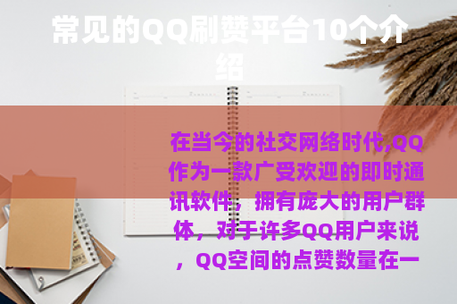 在当今的社交网络时代,QQ作为一款广受欢迎的即时通讯软件,拥有庞大的用户群体,对于许多QQ用户来说,QQ空间的点赞数量在一定程度上代表着自己的人气和受关注程度,出现了众多的QQ刷赞平台,以下是10个比较常见的QQ刷赞平台。
