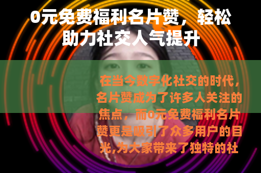 在当今数字化社交的时代,名片赞成为了许多人关注的焦点,而0元免费福利名片赞更是吸引了众多用户的目光,为大家带来了独特的社交体验。