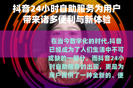 在当今数字化的时代,抖音已经成为了人们生活中不可或缺的一部分,而抖音24小时自助服务的出现,更是为用户提供了一种全新的、便捷的使用体验。