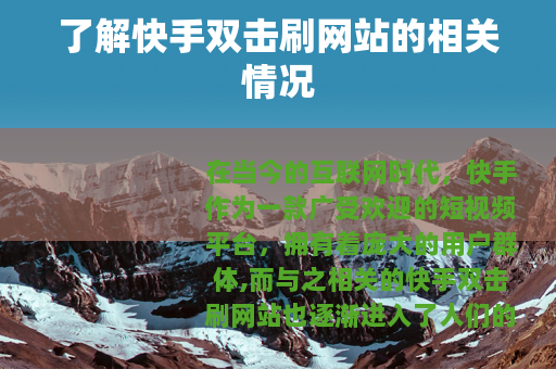在当今的互联网时代,快手作为一款广受欢迎的短视频平台,拥有着庞大的用户群体,而与之相关的快手双击刷网站也逐渐进入了人们的视野。