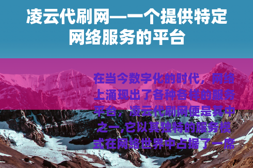 在当今数字化的时代,网络上涌现出了各种各样的服务平台,凌云代刷网便是其中之一,它以其独特的服务模式在网络世界中占据了一席之地。