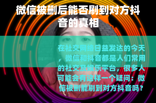 在社交网络日益发达的今天,微信和抖音都是人们常用的社交及娱乐平台,很多人可能会有这样一个疑问:微信被删能刷到对方抖音吗?