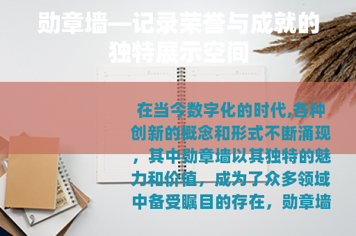 在当今数字化的时代,各种创新的概念和形式不断涌现,其中勋章墙以其独特的魅力和价值,成为了众多领域中备受瞩目的存在,勋章墙,它不仅仅是一面简单的墙,更是一个承载着无数荣誉、努力和成就的象征,有着丰富的内涵和深远的意义。