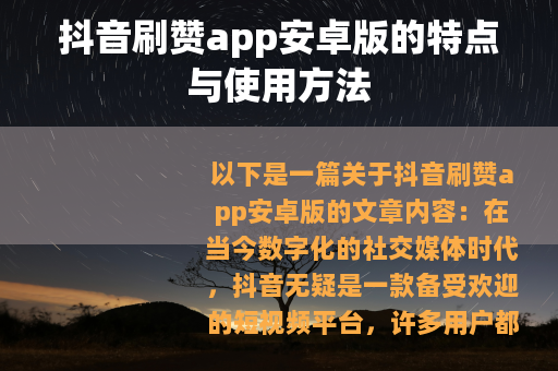 以下是一篇关于抖音刷赞app安卓版的文章内容: