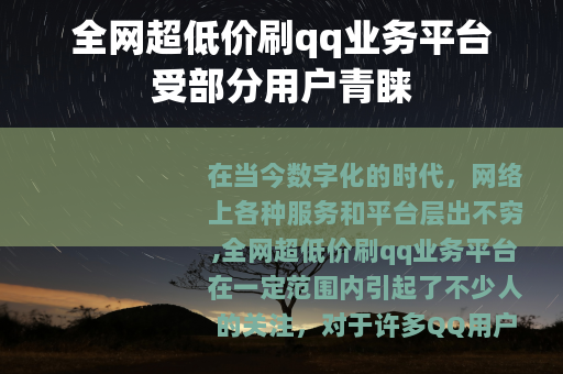 在当今数字化的时代,网络上各种服务和平台层出不穷,全网超低价刷qq业务平台在一定范围内引起了不少人的关注。