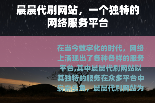 在当今数字化的时代,网络上涌现出了各种各样的服务平台,其中晨晨代刷网站以其独特的服务在众多平台中崭露头角。