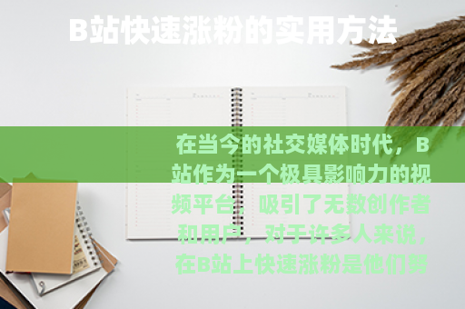 在当今的社交媒体时代,B站作为一个极具影响力的视频平台,吸引了无数创作者和用户,对于许多人来说,在B站上快速涨粉是他们努力追求的目标,B站怎么涨粉丝快呢?以下是一些有效的方法。 质量是关键,要制作出高质量、有吸引力的视频内容,这意味着你的视频要有独特的创意和观点,能够引起观众的兴趣和共鸣,无论是搞笑、知识科普、美食制作还是游戏攻略等各种类型,都要确保在内容上做到精益求精,如果你擅长游戏领域,那么可以制作精彩的游戏操作集锦,或者深入分析游戏的策略和技巧,为玩家提供有价值的信息,这样就能吸引更多游戏爱好者关注你的频道。
