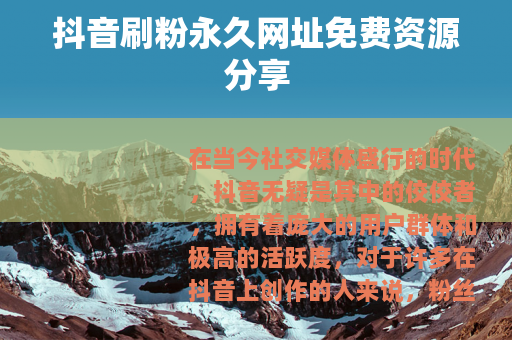 在当今社交媒体盛行的时代,抖音无疑是其中的佼佼者,拥有着庞大的用户群体和极高的活跃度,对于许多在抖音上创作的人来说,粉丝数量是衡量其成功与否的一个重要指标,抖音刷粉这个话题也备受关注,尤其是一些声称提供抖音刷粉永久网址免费的信息,更是吸引了不少人的目光。