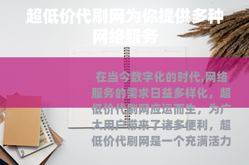 在当今数字化的时代,网络服务的需求日益多样化,超低价代刷网应运而生,为广大用户带来了诸多便利。
