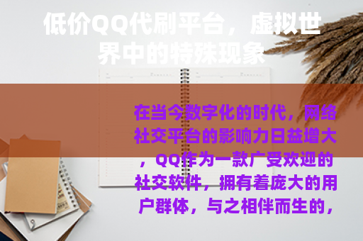 在当今数字化的时代,网络社交平台的影响力日益增大,QQ作为一款广受欢迎的社交软件,拥有着庞大的用户群体,与之相伴而生的,是各种各样的QQ代刷平台,其中低价QQ代刷平台尤其受到一部分人的关注。
