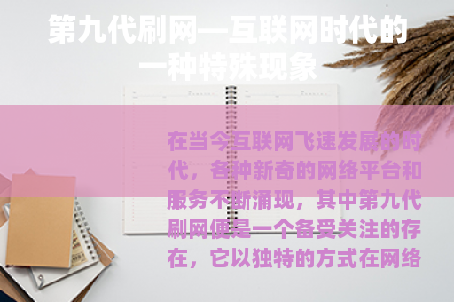 在当今互联网飞速发展的时代,各种新奇的网络平台和服务不断涌现,其中第九代刷网便是一个备受关注的存在,它以独特的方式在网络世界中占据了一席之地,吸引着众多用户的目光。