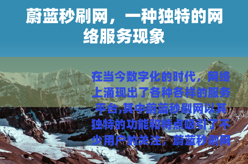 在当今数字化的时代,网络上涌现出了各种各样的服务平台,其中蔚蓝秒刷网以其独特的功能和特点吸引了不少用户的关注。