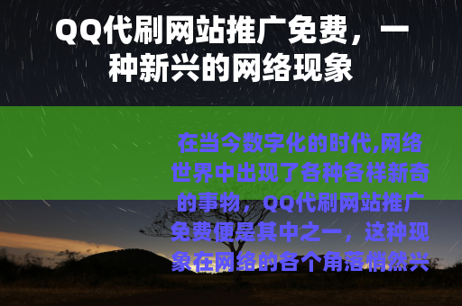 在当今数字化的时代,网络世界中出现了各种各样新奇的事物,QQ代刷网站推广免费便是其中之一,这种现象在网络的各个角落悄然兴起,吸引了众多人的目光。