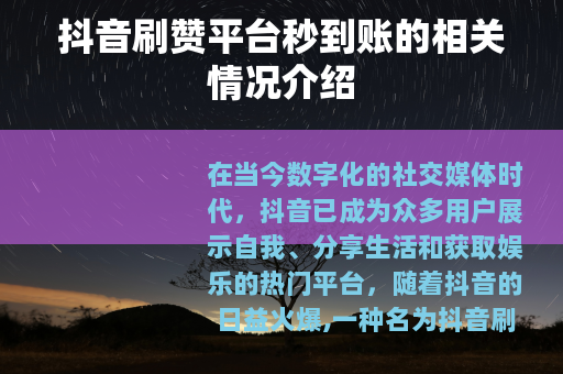 在当今数字化的社交媒体时代,抖音已成为众多用户展示自我、分享生活和获取娱乐的热门平台,随着抖音的日益火爆,一种名为抖音刷赞平台秒到账的现象也逐渐进入了人们的视野。