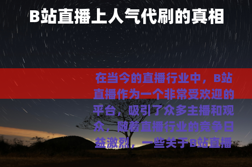 在当今的直播行业中,B站直播作为一个非常受欢迎的平台,吸引了众多主播和观众,随着直播行业的竞争日益激烈,一些关于B站直播上人气代刷的话题也逐渐浮出水面,B站直播上人气代刷是真的吗?