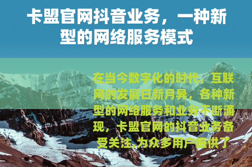 在当今数字化的时代,互联网的发展日新月异,各种新型的网络服务和业务不断涌现,卡盟官网的抖音业务备受关注,为众多用户提供了独特的机会和体验。