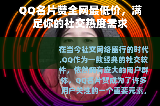 在当今社交网络盛行的时代,QQ作为一款经典的社交软件,依然拥有庞大的用户群体,QQ名片赞成为了许多用户关注的一个重要元素,它在一定程度上反映了一个人的社交活跃度和受欢迎程度,而如今,市场上出现了众多提供QQ名片赞服务且号称全网最低价的商家,为广大QQ用户带来了新的选择。