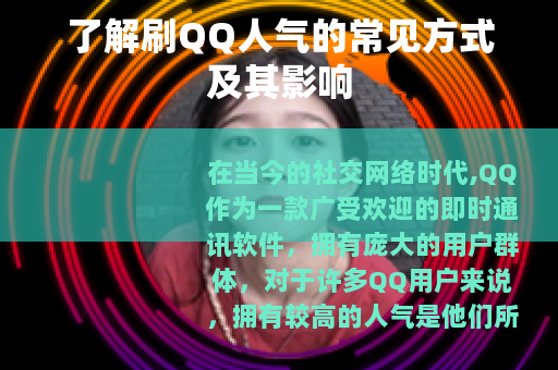 在当今的社交网络时代,QQ作为一款广受欢迎的即时通讯软件,拥有庞大的用户群体,对于许多QQ用户来说,拥有较高的人气是他们所追求的目标之一,刷QQ人气也因此成为了一个备受关注的话题。