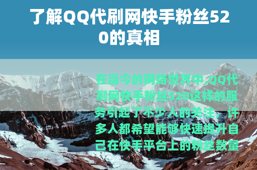 在当今的网络世界中,QQ代刷网快手粉丝520这样的服务引起了不少人的关注,许多人都希望能够快速提升自己在快手平台上的粉丝数量,从而获得更多的关注和影响力。