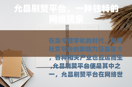 在当今数字化的时代,网络社交平台的影响力日益增大,各种相关产业也应运而生,允昌刷赞平台便是其中之一。