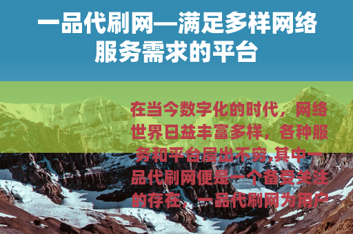 在当今数字化的时代,网络世界日益丰富多样,各种服务和平台层出不穷,其中一品代刷网便是一个备受关注的存在。