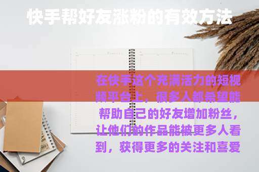 在快手这个充满活力的短视频平台上,很多人都希望能帮助自己的好友增加粉丝,让他们的作品能被更多人看到,获得更多的关注和喜爱,以下是一些在快手上帮助好友涨粉的实用方法。