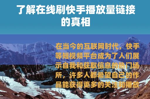 在当今的互联网时代,快手等短视频平台成为了人们展示自我和获取信息的热门场所,许多人都希望自己的作品能获得更多的关注和播放量,一些所谓的“在线刷快手播放量链接”开始在网络上出现。