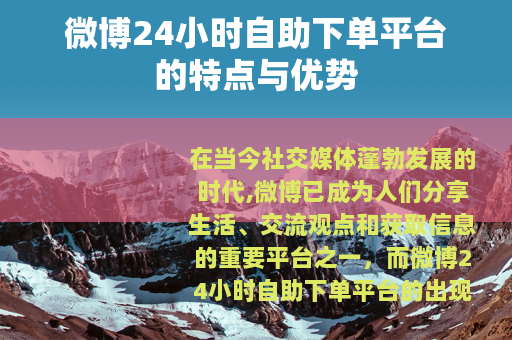 在当今社交媒体蓬勃发展的时代,微博已成为人们分享生活、交流观点和获取信息的重要平台之一,而微博24小时自助下单平台的出现,为用户提供了更加便捷和多样化的服务,满足了不同用户的需求。