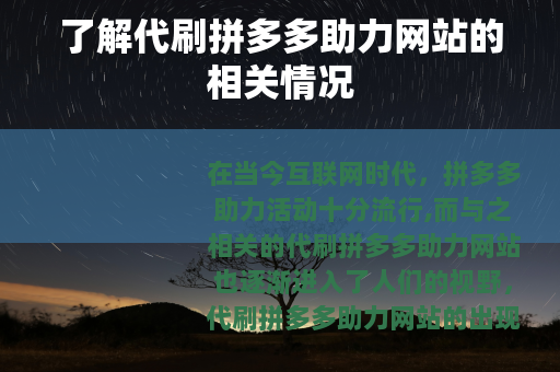 在当今互联网时代,拼多多助力活动十分流行,而与之相关的代刷拼多多助力网站也逐渐进入了人们的视野。