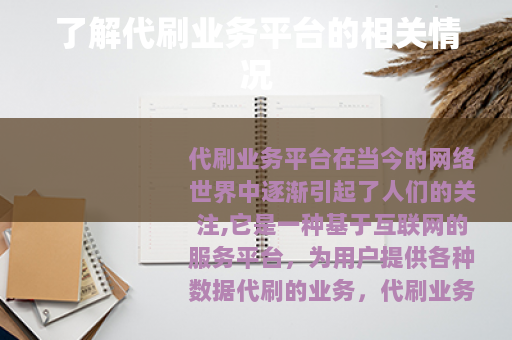代刷业务平台在当今的网络世界中逐渐引起了人们的关注,它是一种基于互联网的服务平台,为用户提供各种数据代刷的业务。