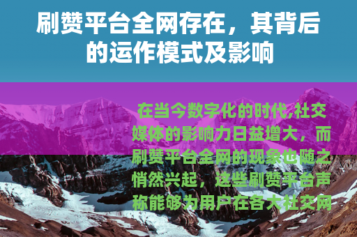 在当今数字化的时代,社交媒体的影响力日益增大,而刷赞平台全网的现象也随之悄然兴起,这些刷赞平台声称能够为用户在各大社交网络上快速增加点赞、评论、粉丝等数据,从而提升用户的网络影响力和知名度。