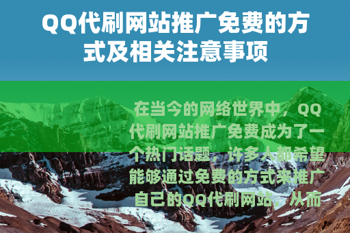 在当今的网络世界中,QQ代刷网站推广免费成为了一个热门话题,许多人都希望能够通过免费的方式来推广自己的QQ代刷网站,从而吸引更多的用户,提高网站的知名度和影响力。