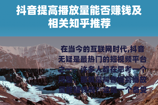 在当今的互联网时代,抖音无疑是最热门的短视频平台之一,许多人都在思考一个问题,那就是抖音提高播放量能赚钱吗?这是一个备受关注的话题,也引发了众多网友在知乎等平台上的热烈讨论。