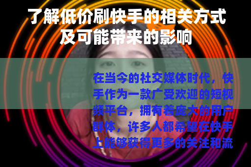 在当今的社交媒体时代,快手作为一款广受欢迎的短视频平台,拥有着庞大的用户群体,许多人都希望在快手上能够获得更多的关注和流量,从而提升自己的影响力,而低价刷快手的现象也随之出现,这一方式在一定程度上满足了部分用户快速增长粉丝和点赞量等需求。
