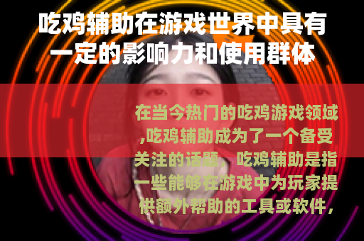 在当今热门的吃鸡游戏领域,吃鸡辅助成为了一个备受关注的话题,吃鸡辅助是指一些能够在游戏中为玩家提供额外帮助的工具或软件,它涵盖了多种功能,从简单的瞄准辅助到复杂的自动射击、透视等功能,旨在让玩家在游戏中获得更好的成绩和体验。