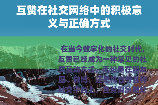 在当今数字化的社交时代,互赞已经成为一种常见的社交互动方式,无论是在朋友圈、微博,还是抖音等各种社交平台上,互赞现象随处可见,互赞,就是用户之间相互点赞对方的内容,以此表达对彼此的认可和支持。