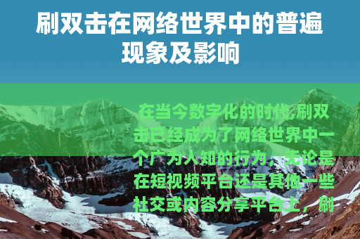 在当今数字化的时代,刷双击已经成为了网络世界中一个广为人知的行为,无论是在短视频平台还是其他一些社交或内容分享平台上,刷双击的现象都屡见不鲜。